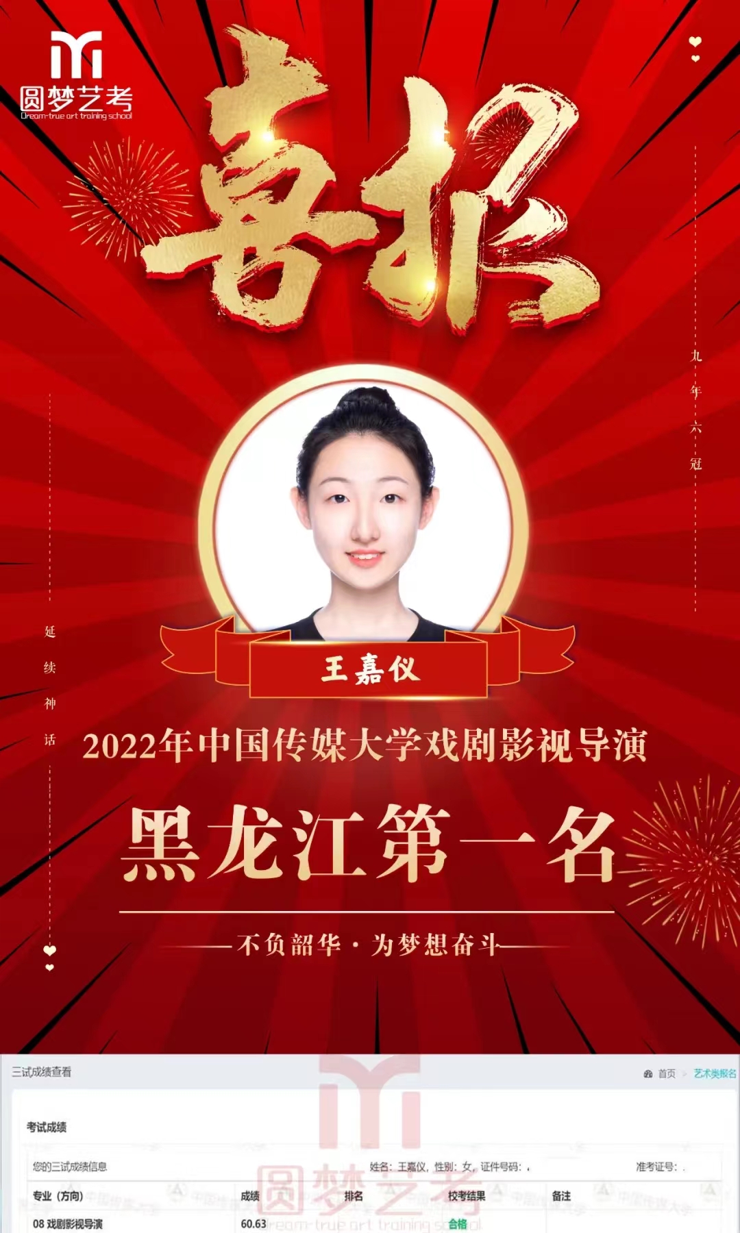 王嘉仪 22年中国传媒大学戏剧影视导演 黑龙江省第一名