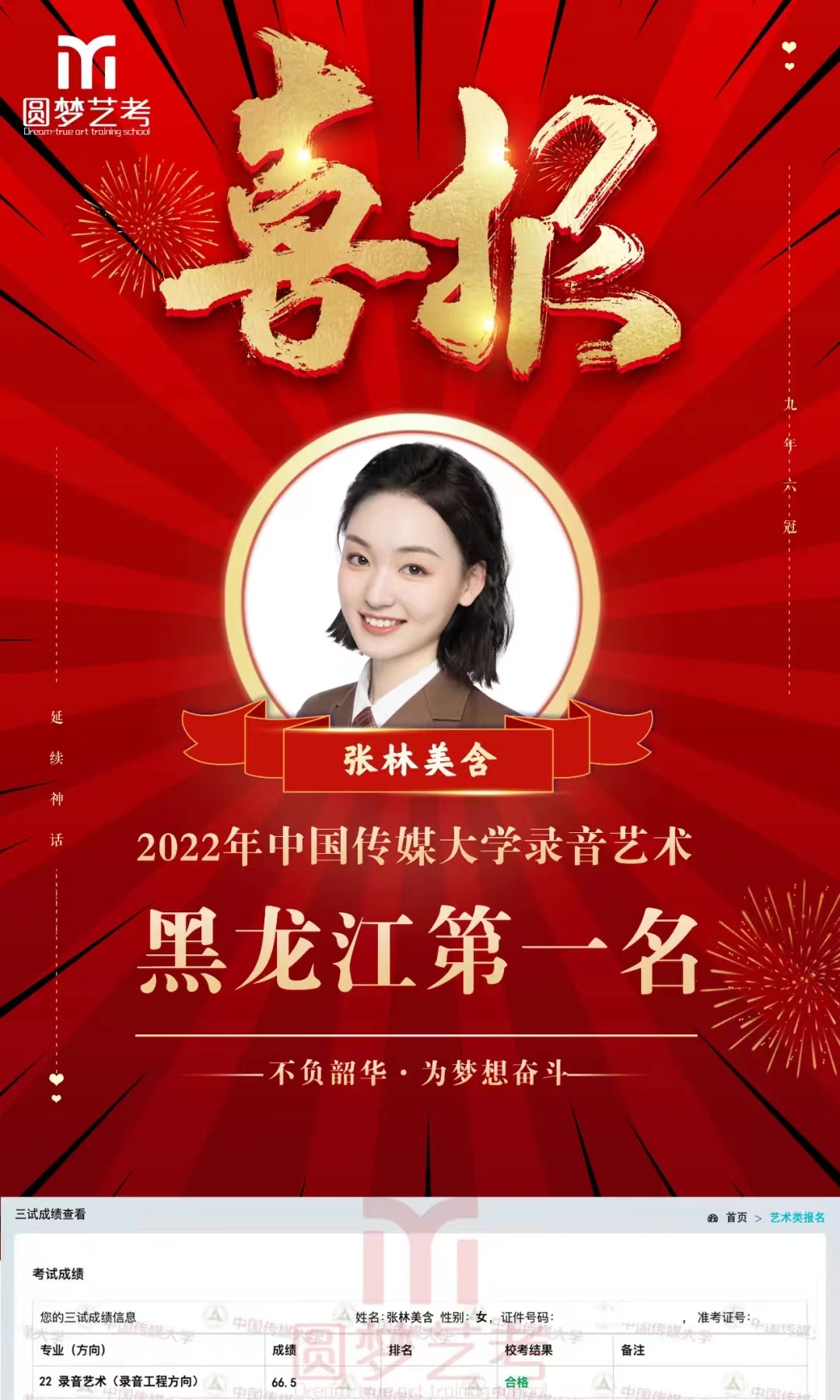 张林美含22年中国传媒大学录音艺术黑龙江第一名